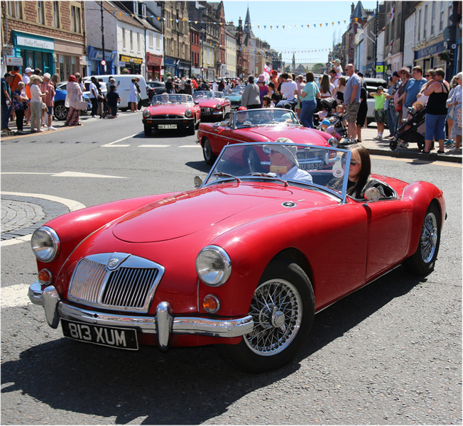 We did our usual stint at the Dunbar RNLI gala day - providing the open top cars for the Lifeboat Queen and her entourage. We had 15 cars on the day, but not all open topped! About a dozen MGs joined the parade and the High Street was thronged with people watching the festivities - with the Pipe Band, the RNLI, the Gala Queen and the MGs, the Harleys and some Scooters. The water was hot and sunny, the public were out in force and a good day was had by all.