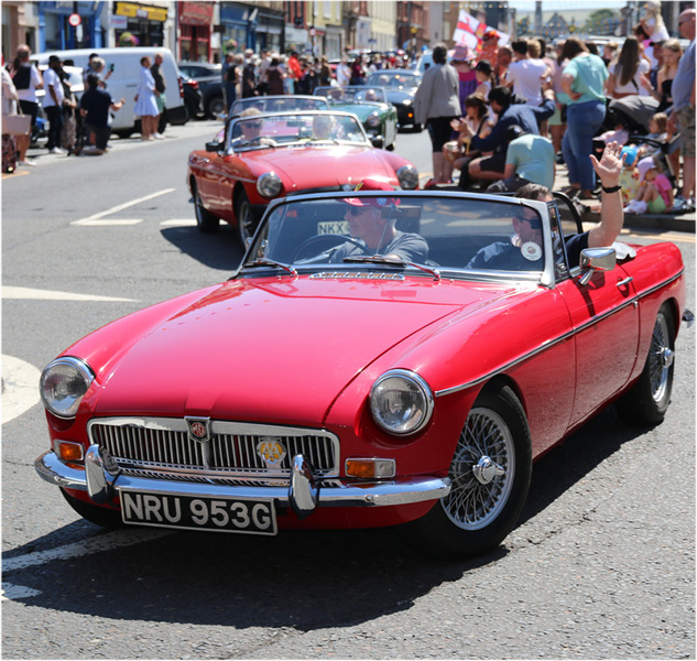 We had thirteen MGs at the enjoyable Dunbar RNLI Gala Day, which was blessed with warm, dry weather. We chatted and enjoyed our coffees until it was time to go up for the parade. Eleven cars joined the parade to transport the Gala Queen and her entourage - the Gala Queen chose the white MGB of course. Afterwards we enjoyed the day's activities, but the rain started towards the end of the afternoon and it was a wet run home.