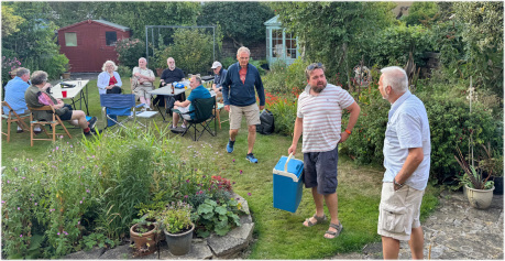 Fourteen souls braved the sunshine for a relaxed and enjoyable evening BBQ chez Allan. A most pleasant evening and many thanks to Allan & George for chef duties - they coped admirably with the burgers and kebabs brought by members. The only disappointment was no Costco cake due to renovations in the baking area - we had to make do with delicious and moreish chocolate brownies!