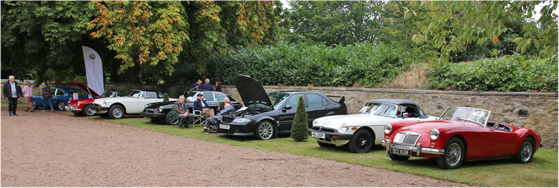 The BVAC Classic at Thirlestane Castle was blessed with sunny weather, so there was a huge turnout of entries and spectators. We had 21 MGs plus a rogue Mercedes on our stand, with a good range of MGs on show - mostly MGBs, but also Midget/Sprites, MGC, GT V8, MGA, Magnette, TF, ZS180 and MG3. It was a lovely, relaxed and friendly show and everyone enjoyed themselves as there was lots to see.