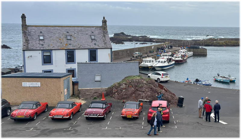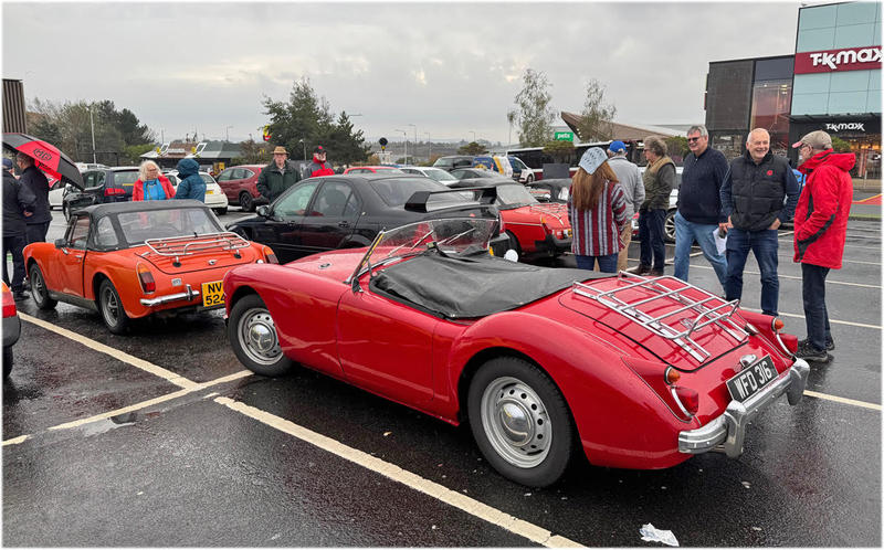Nine MGs and fourteen members braved the wet start at the Dunfermline Dobbies. However, during the scenic run, the weather improved and the sun came out. At the finish, everyone enjoyed and excellent fish supper at the Wee Chippy in Anstruther.